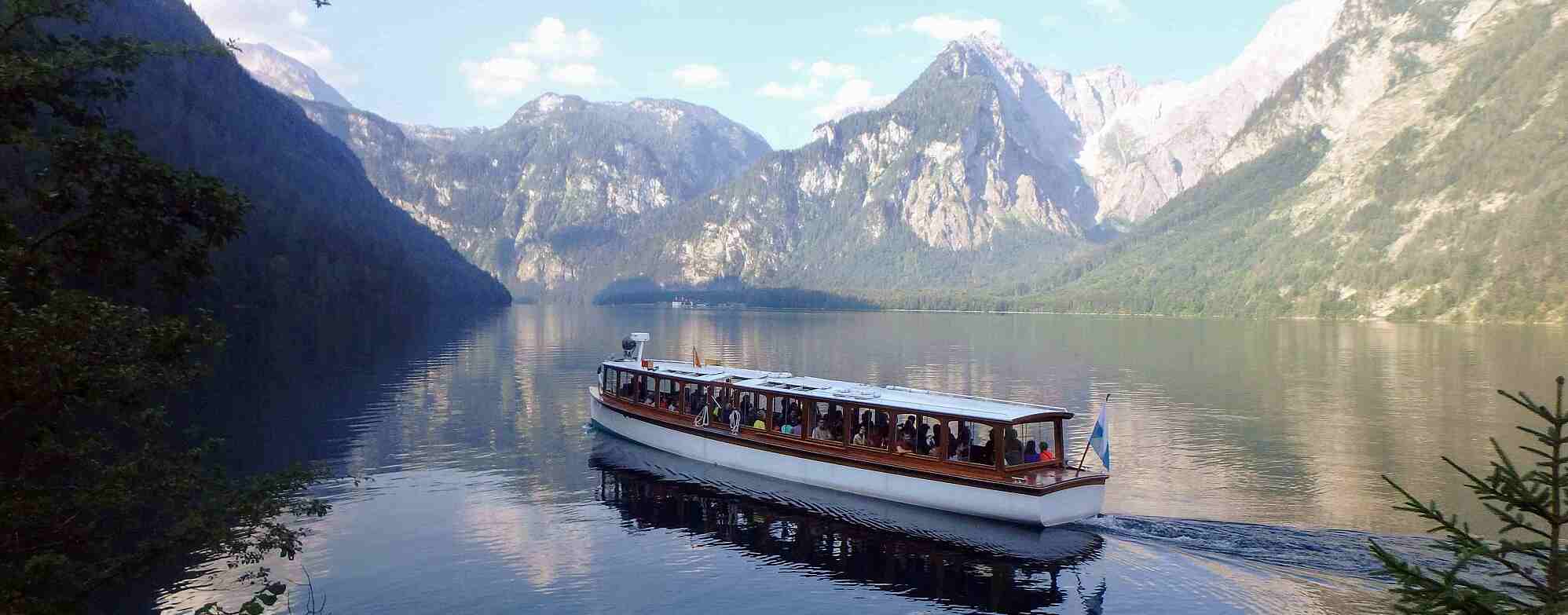 Schifffahrt Königssee mit dem Boot von der Seelände zur Halbinsel St. Bartholomä und weiter bis zur Enthaltestelle Salet